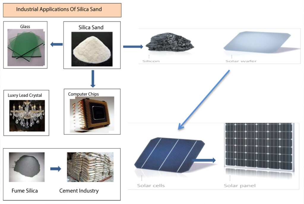 These studies have also indicated through the results of analysis that the silica sand deposits are very promising and can be utilized for a variety of industrial purposes without or after simple upgrading processes depending upon which grade of glass quality is required. Only in the case of the production silicon metal used in electronics (silicon chips.… etc.) and in the photovoltaic industries, processing at a molecular level is required in order to remove trace elements from the atomic lattices of the silicon metal to produce ultra-pure silica sand required for this industry.